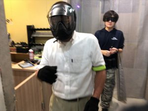 Then, we left our precious items in a small locker. If you have a backpack or handbag, you can ask the staff to keep them. But why do we need to have an armband? Actually there were two colors and so the armband is necessary to distinguish our team members and opposing team members. We have experienced some types of games and each game was rather short (probably 2 or 3 minutes). There were 4 or 5 games in total. The indoor arena was basically divided in two areas (I guess area 2 was 10 m long and 10 m large and the area 1 was 5 m long and 5 m large). When you get hit, you need to announce it and then you are evicted. I know we will never die for this but it’s still really thrilling !